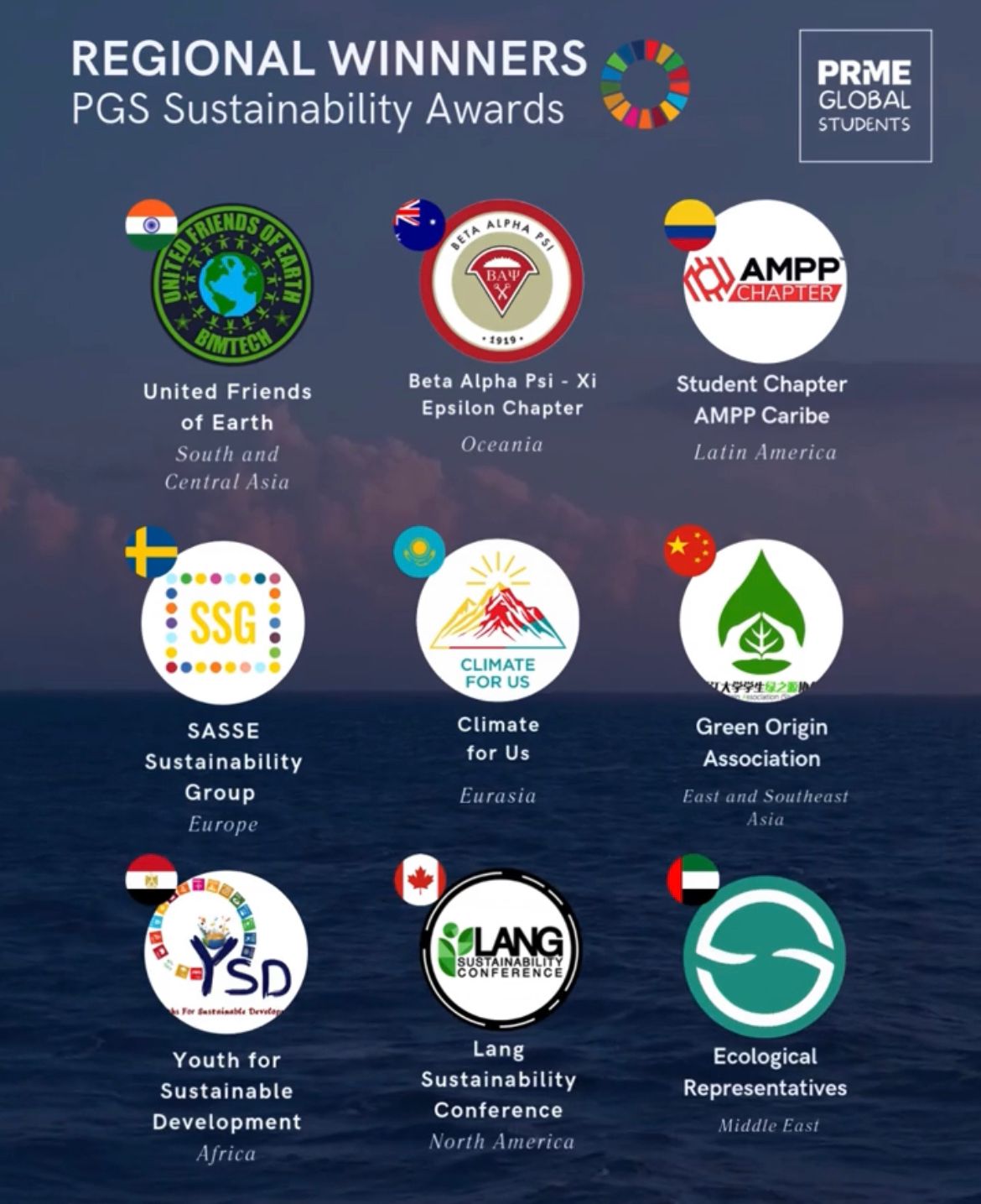 PGS Sustainable Award 2025 әлемнің тоғыз аймағын қамтиды. Аймақтық кезең жеңімпаздары екінші кезеңге онлайн форматта қатысады. Үздік үш ұйым өз бастамаларын Нью-Йорктегі студенттердің жаһандық саммитінде таныстыру мүмкіндігіне ие болады.