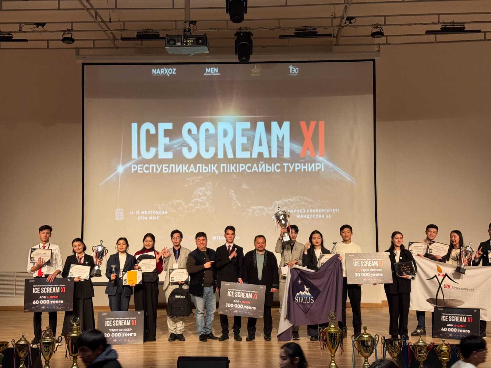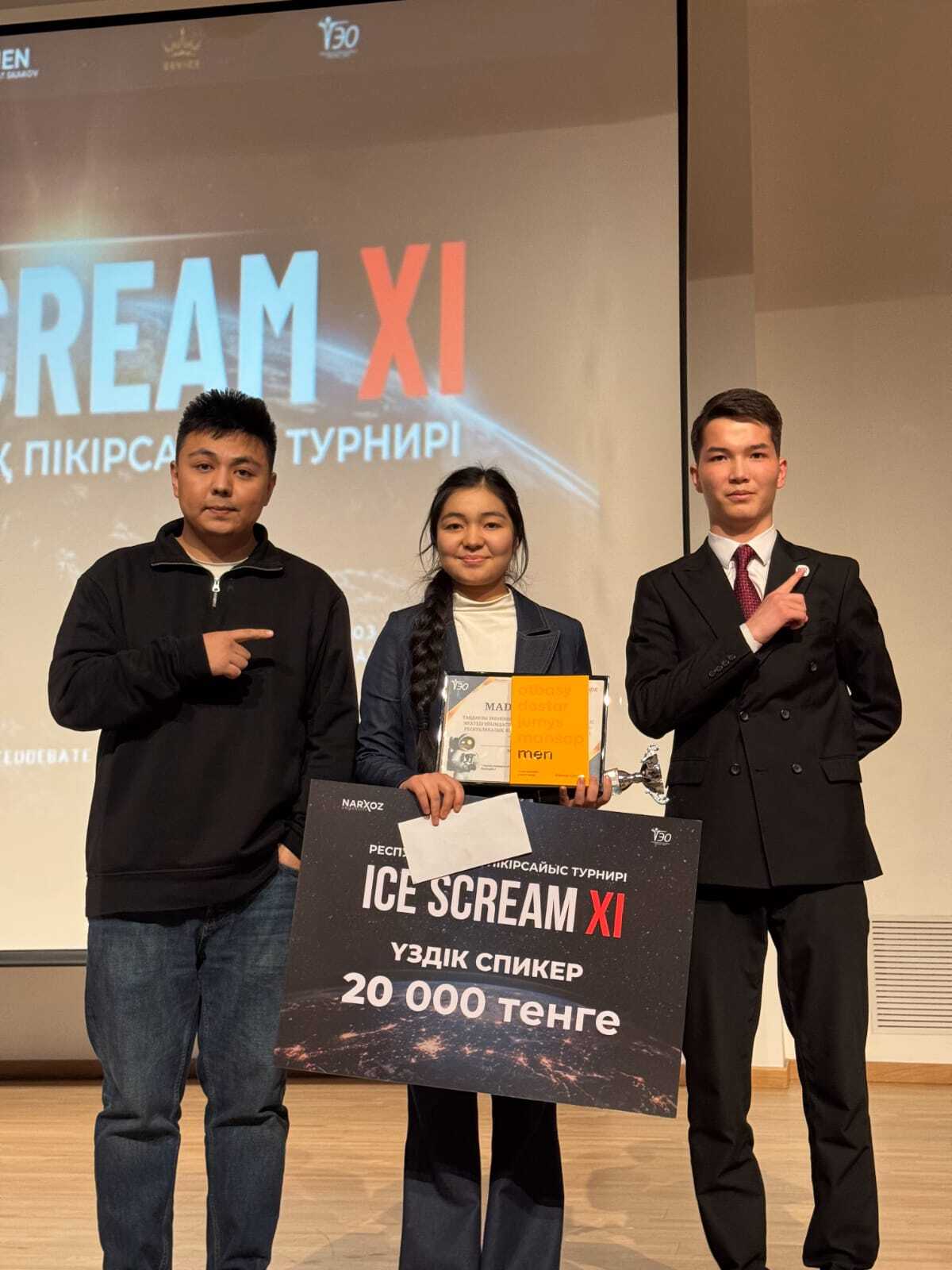 14-15 желтоқсан аралығында Нархоз университетінде өткізілген ICE SCREAM XI Республикалық Жас Пікірсайысшылар Турнирі өз мәресіне жетті. Бұл шара еліміздің түкпір-түкпірінен 86 фракция, 164 қатысушы және 500-ден астам көрерменді жинап, еліміздегі жас пікірсайысшылардың білімдері мен шеберліктерін көрсететін алаңға айналды. Шара Тәуелсіздік күніне орай ұйымдастырылды, бұл ерекше күн барлық қатысушылар үшін ерекше мәнге ие болды.